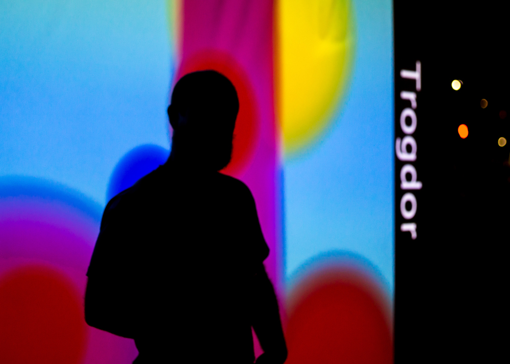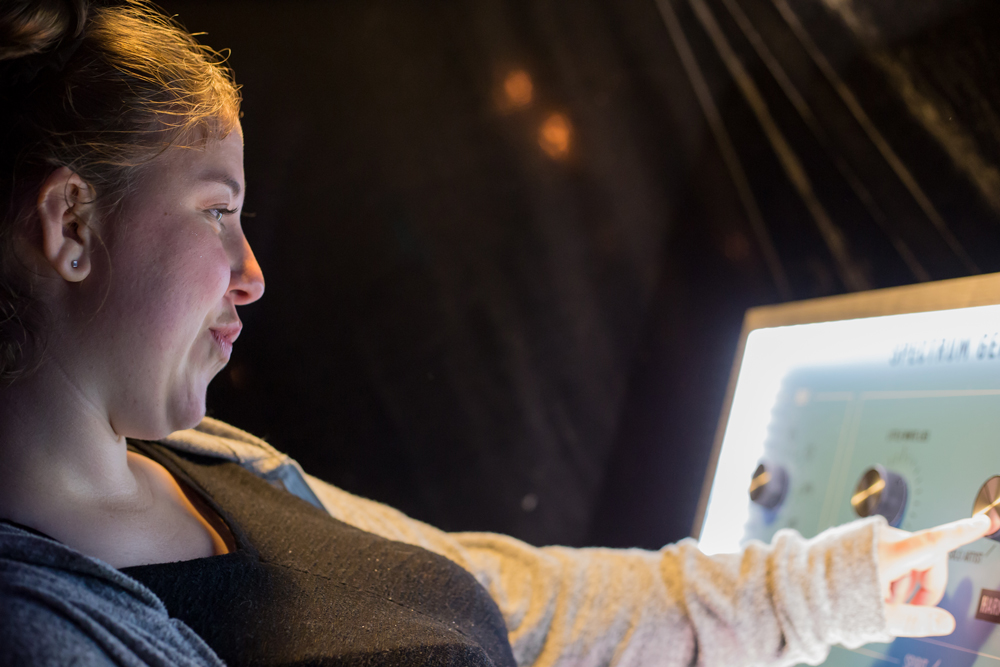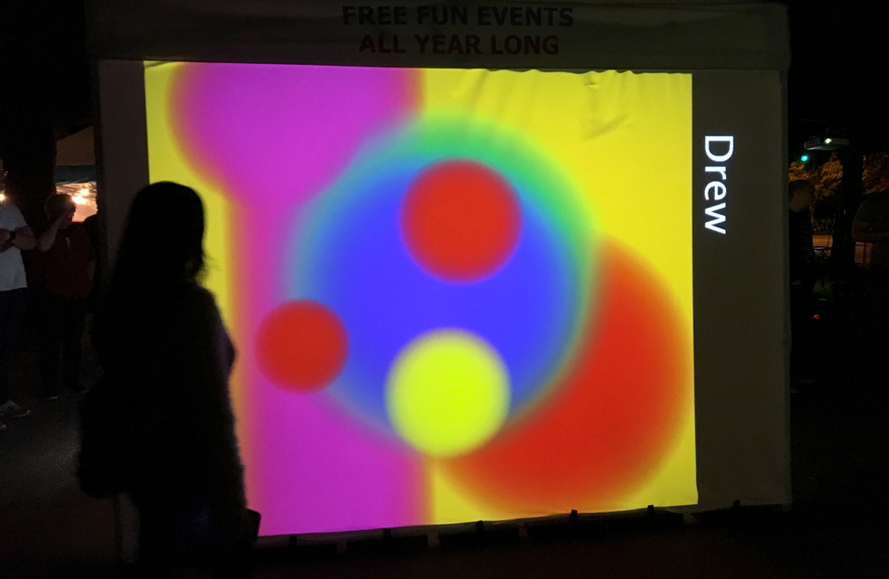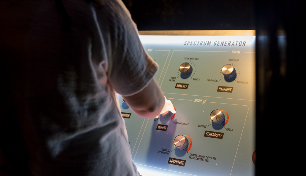 Participants enter information about themselves at the control panel, choosing where they fall between two extremes of each personality trait. This data is converted into an image and projected onto a large screen with their name. A slideshow of all participants’ spectrum images is featured throughout the event.